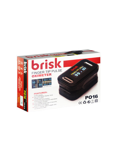 دستگاه اکسیژن سنج (پالس اکسیمتر) PO16 بریسک یک وسیله غیر تهاجمی بوده که میزان اکسیژن خون و ضربان قلب را نمایش می دهد. میزان اکسیژن خون یکی از شاخص های مهم در خصوص کارکرد صحیح ریه میباشد.این وسیله پزشکی برای استفاده بیماران ریوی، بیماران قلبی، ورزشکاران، زنان باردار و افرادی که دچار بیماری های عفونی و ویروسی شده اند کاربرد دارد.دستگاه پالس اکسیمتر بریسک PO16 دارای نمایشگر OLED رنگی است.