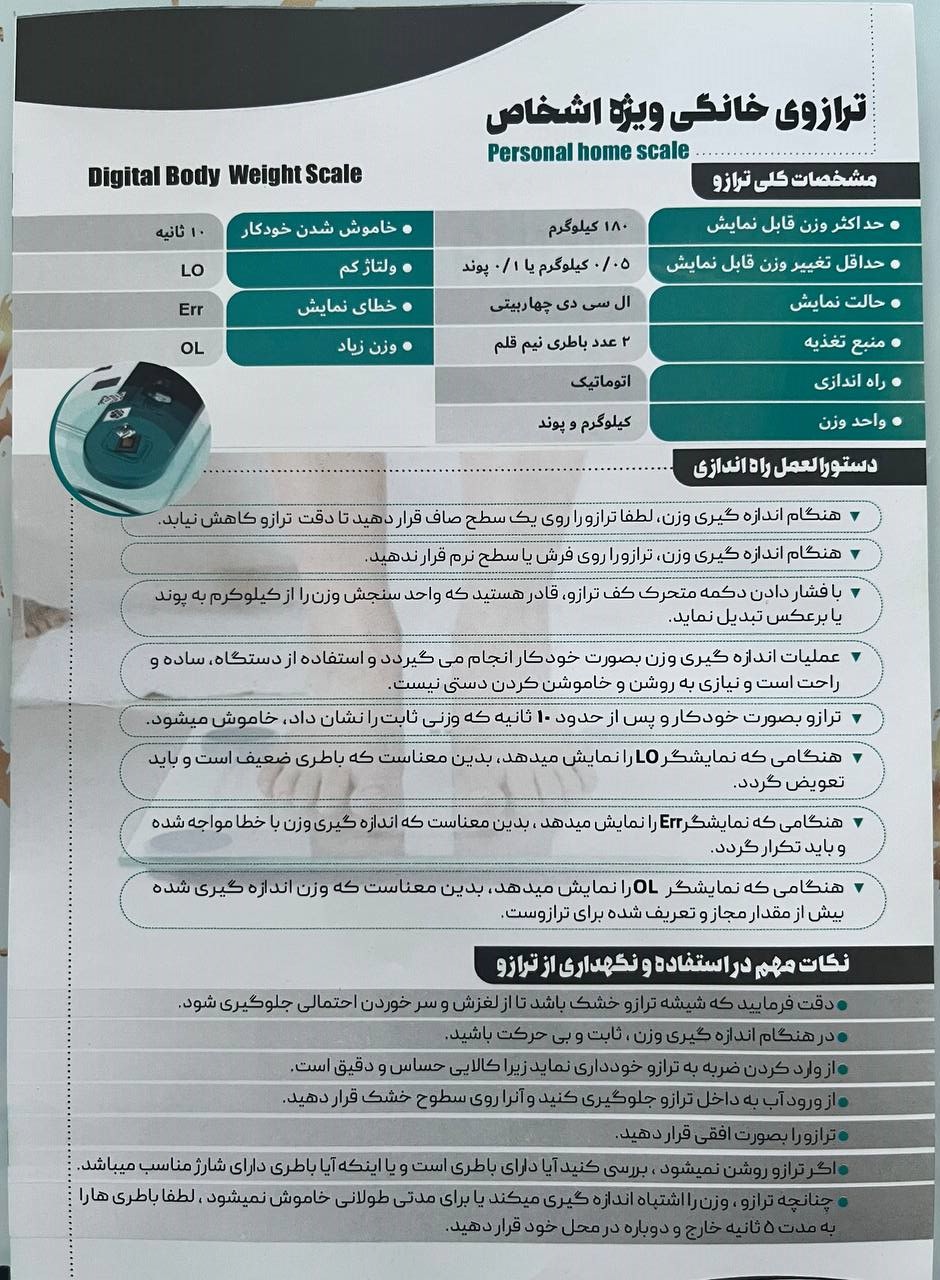 ویژگی های محصول : قابل استفاده تا وزن 180 کیلوگرم