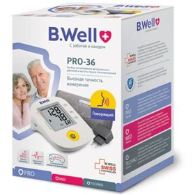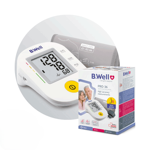 فشارسنج سخنگو بی ول B.well Pro-36 یکی از بهترین دستگاه های فشارخون موجود در بازار است. خرید فشارسنج سخنگو بی ول مدل B.Well pro 36 به شما که فشار خون دارید توصیه می شود. بی نظمی ضربان قلب را در مراحل اولیه با توانایی تشخیص آریتمی تشخیص می دهد. در ابتدای فرآیند اندازه گیری، دستگاه فشارسنج میزان باد بهینه بازوبند را به طور خاص برای هر فرد تعیین می کند. فشارسنج بی ول Pro-36 دارای صفحه نمایش ال سی دی است که دستورات و نتایج را با صدای بلند بیان می کند که کار را برای افراد نابینا بسیار آسان می کند همچنین کاف همراه با این محصول دور بازو را از 22 تا 42 سانتی متر می پوشاند بنابراین نیازی نیست کاف با اندازه های متعدد خریداری کنید.