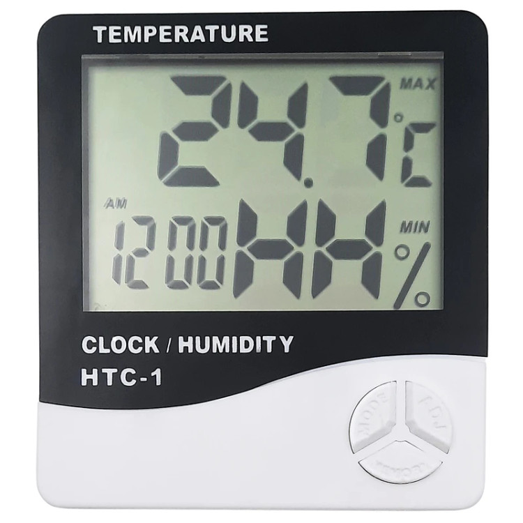 دماسنج رطوبت سنج HTC01 برای اندازه گیری دما و رطوبت محیط بکار می رود. این دماسنج دیجیتالی محیطی بصورت رومیزی و یا دیواری قابل استفاده می باشد. این رطوبت سنج دیجیتال محیط دارای تاریخ و ساعت و حافظه ماکزیمم و مینیمم می باشد. دستگاه با یک باتری نیم قلمی چندین ماه تغذیه می شود.